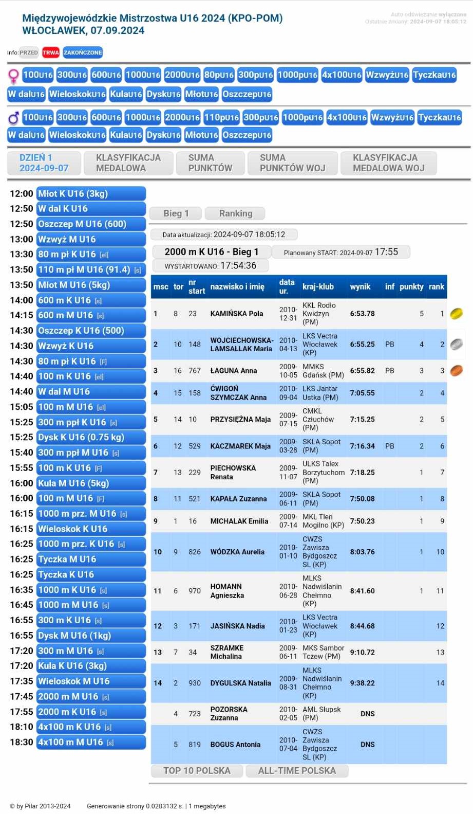 - Pola Kamińska zdobyła złoty medal w biegu na 2000m.,