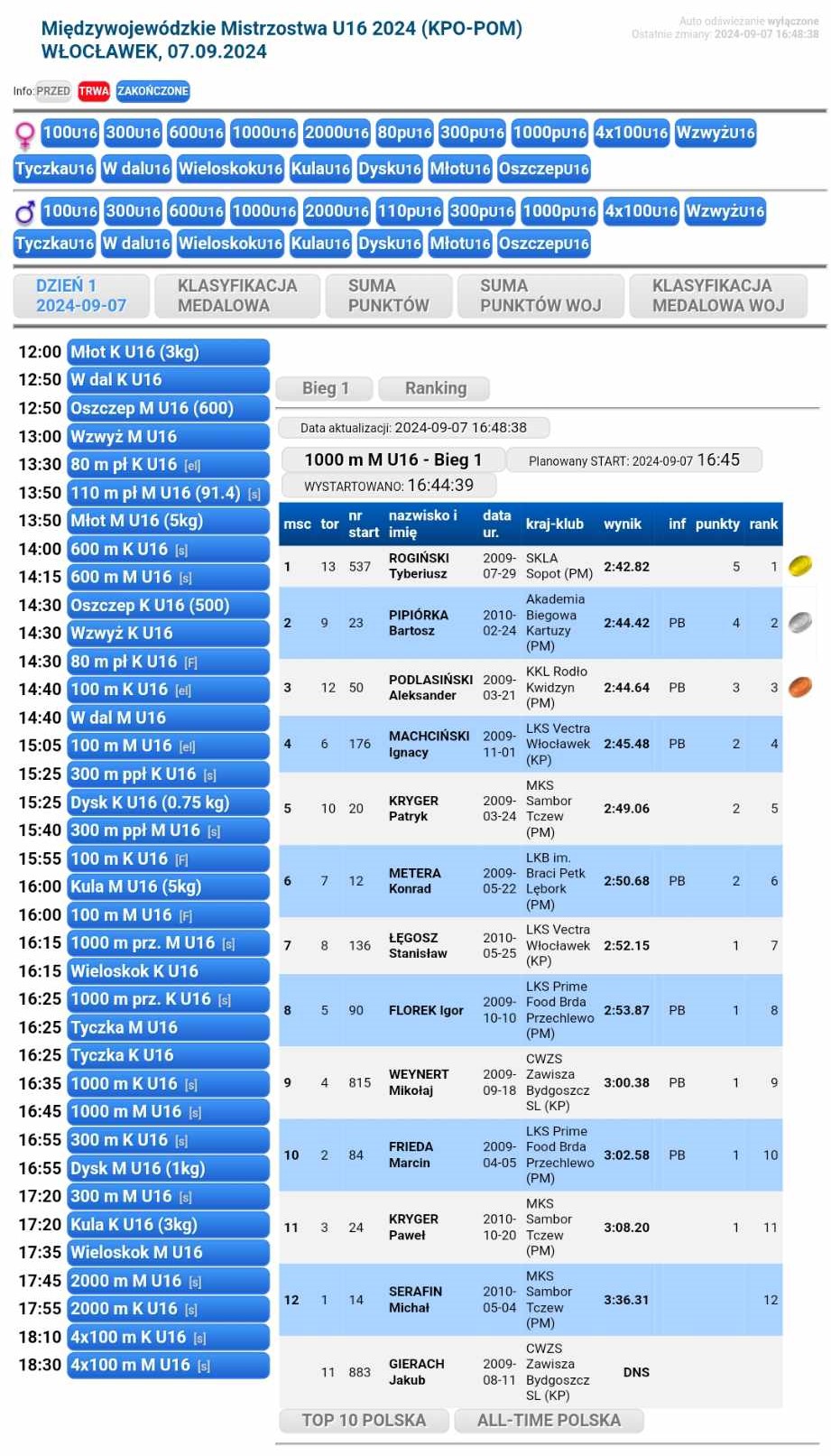 Międzywojewódzkie Mistrzostwa Młodzików - Włocławek 7 września 2024.